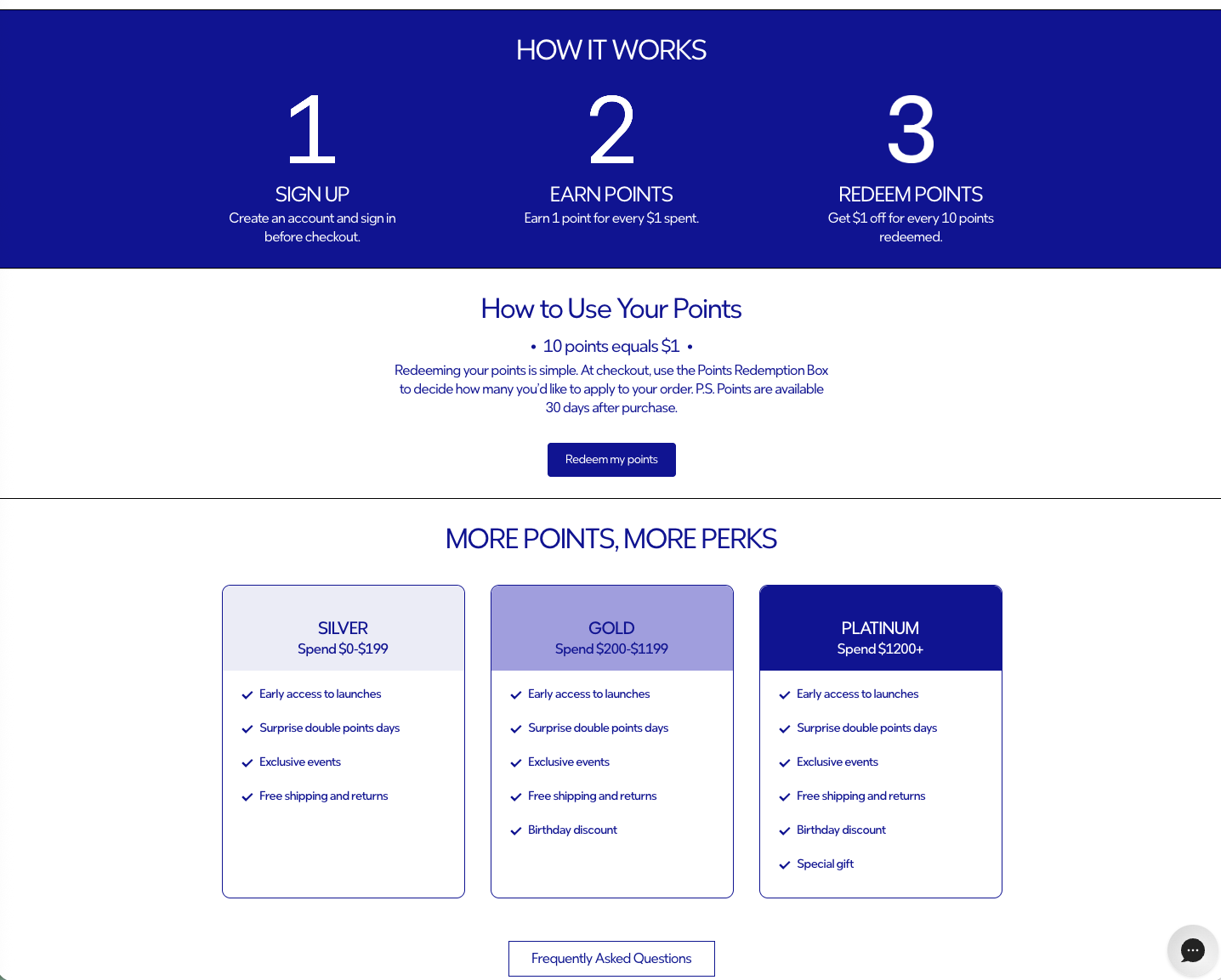 - Points are calculated based on the total spend of the order (and rounded down to nearest dollar). For example, a $258.60 order would earn 258 points.
